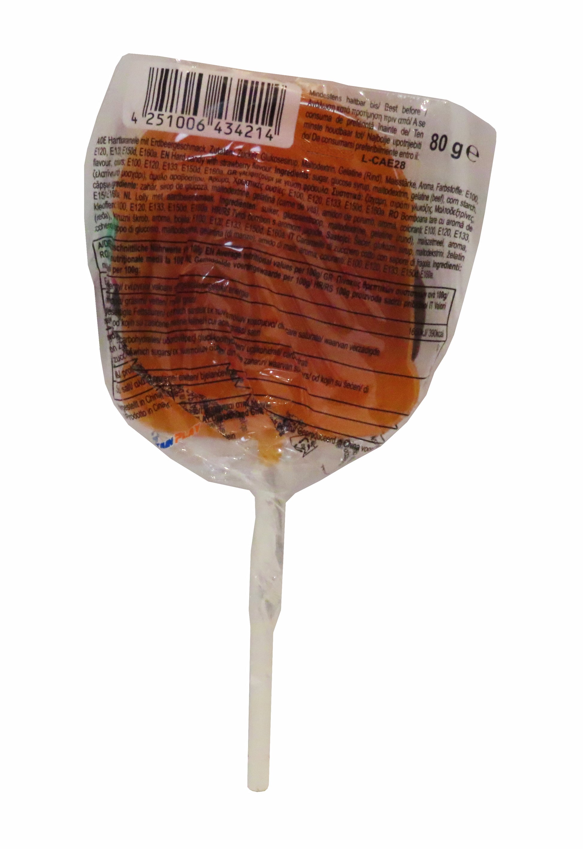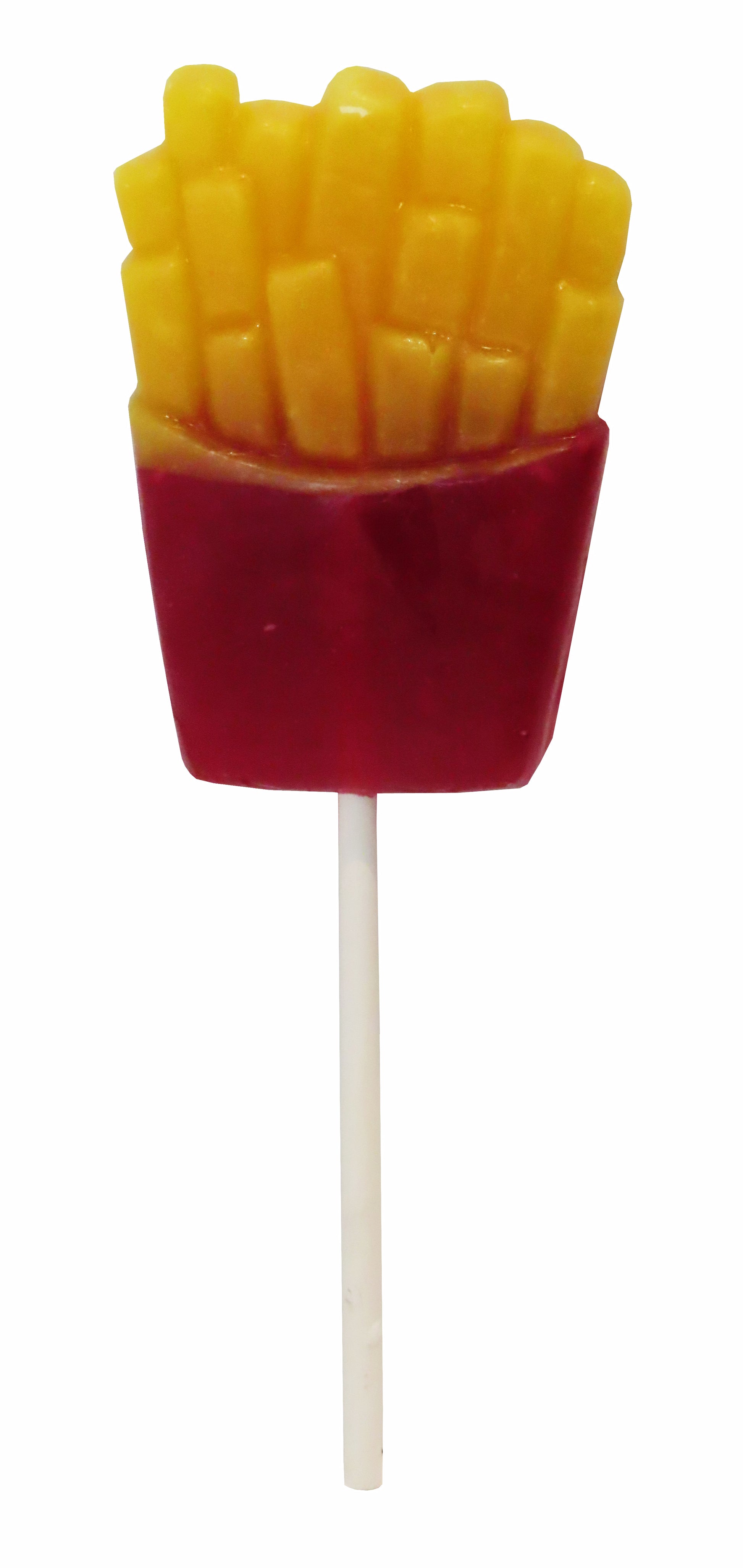 - mit 24 ikonischen XXL Lutschern (80g, 17cm Länge mit Stiel) mit Fast Food Snack Motiven und sanftem Erdbeergeschmack