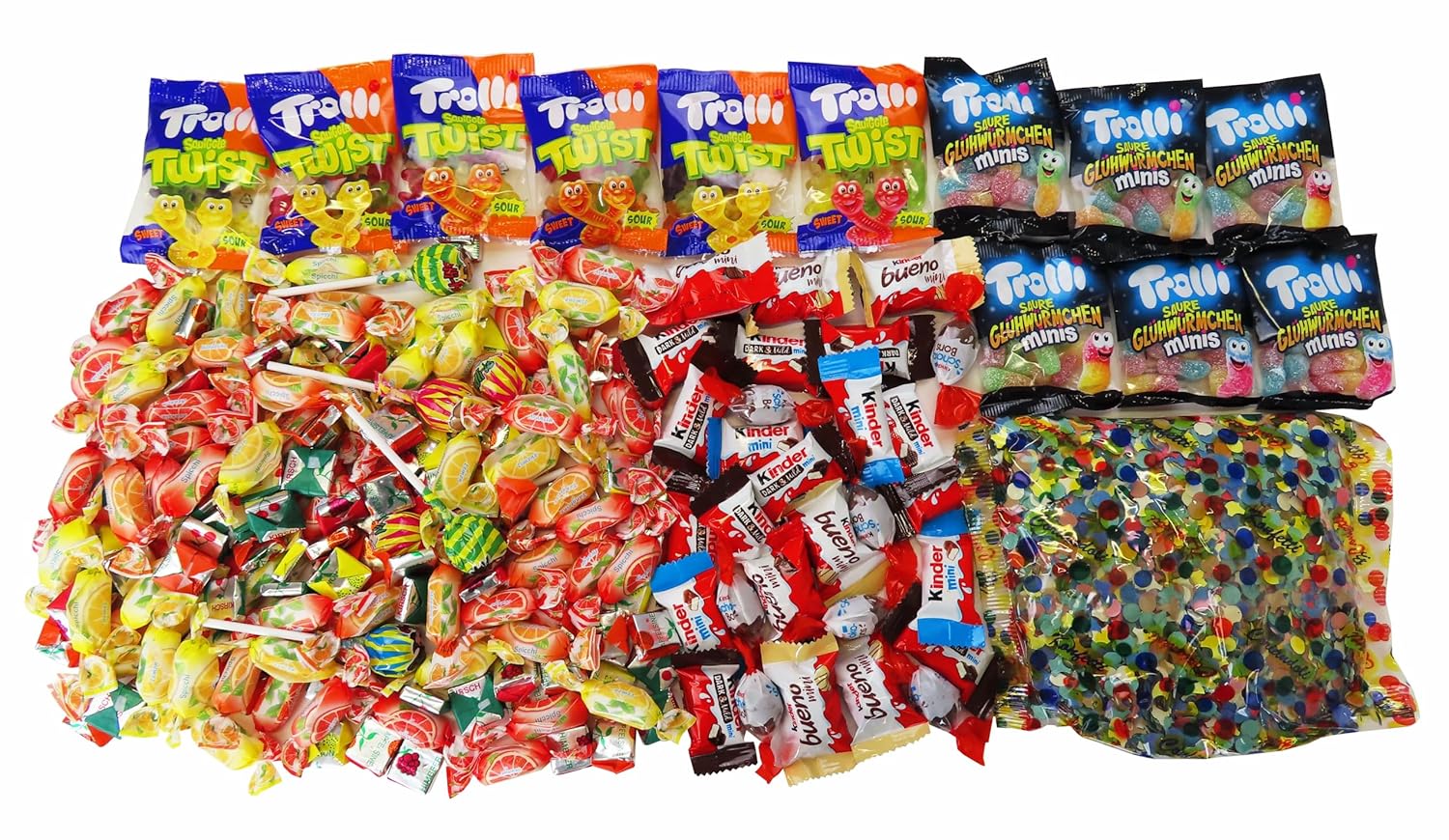 - unkonventionelle und interessante Zusammenstellung aus Bonbons, süßen und sauren Zuckerwaren, Lutschern und Schoko Snack Miniaturen