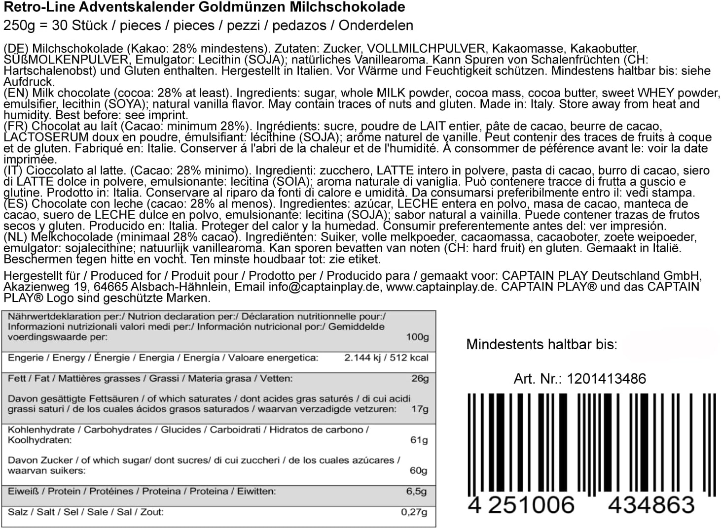 CAPTAIN PLAY Goldmünzen Schokolade Adventskalender 2025 - 250g