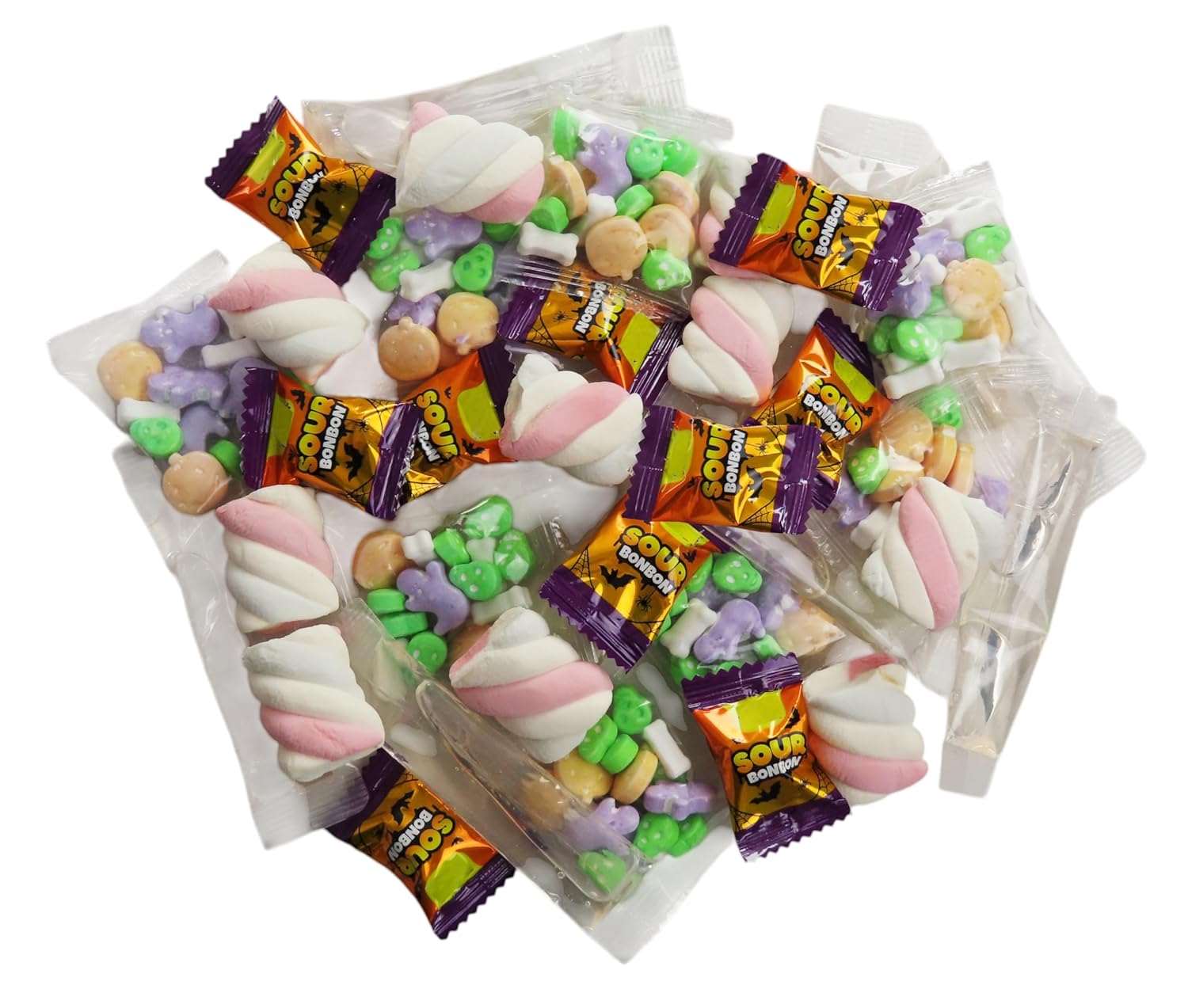 - interessante Zusammenstellung aus 240g Halloween-Süßigkeiten mit verschiedenen Sorten, insgesamt 35 Teile in Einzelverpackung