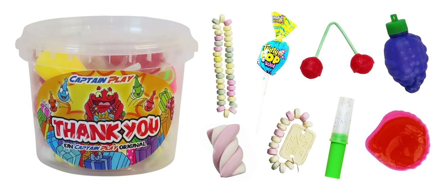 - die CAPTAIN PLAY Süßigkeiten sind alle einzeln verpackt und werden in einer hochwertigen Geschenkbox aus Kunststoff (ca. 13 x 11 x 10 cm), mit sinnvollem Griff geliefert, Box kann sicher wieder verschlossen werden und eignet sich auch nach dem Leeren als praktische Aufbewahrungs- oder Transportmöglichkeit