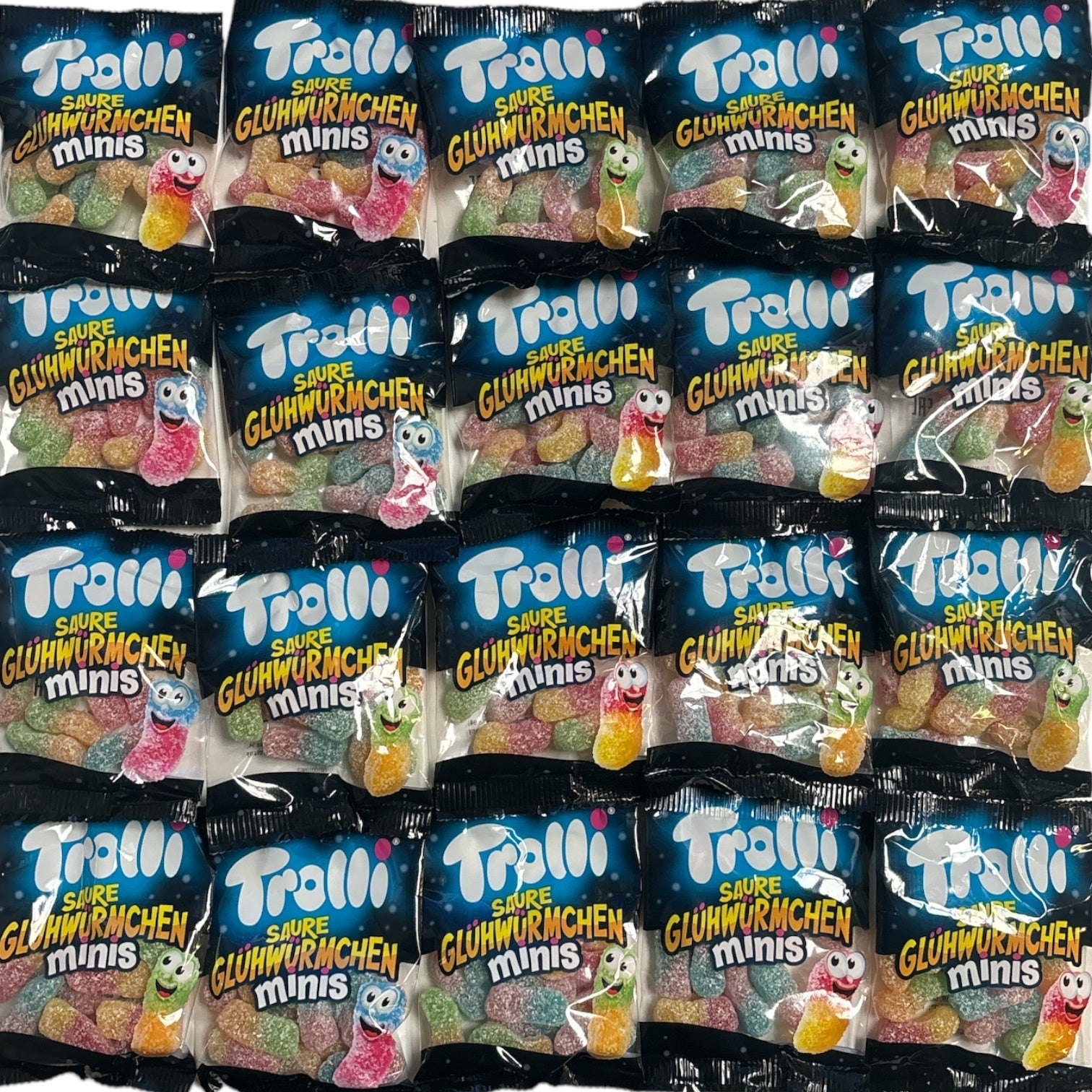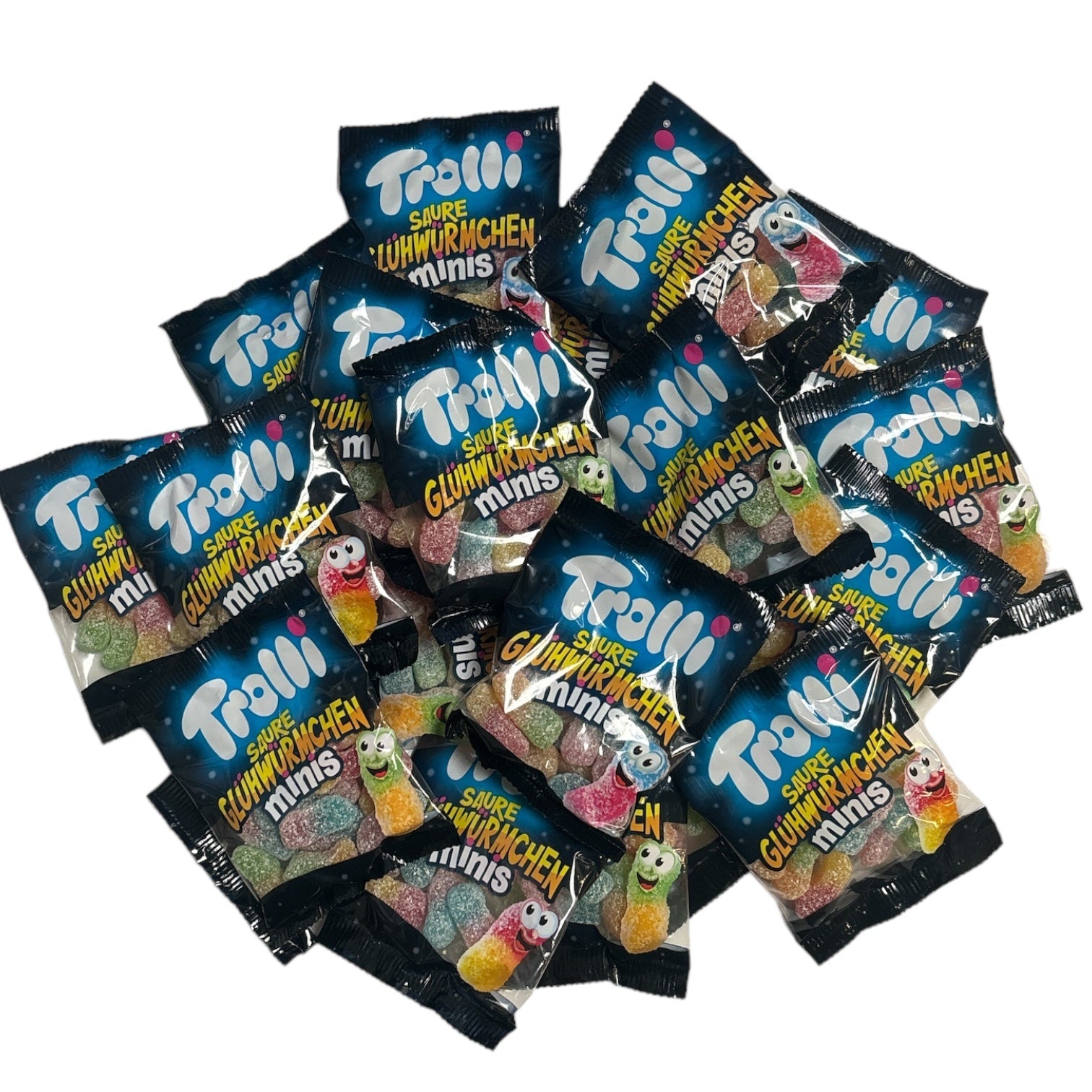 - 20 Mini Beutelchen Trolli Saure Glühwürmchen einzeln verpackt, insgesamt 400g